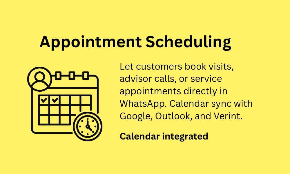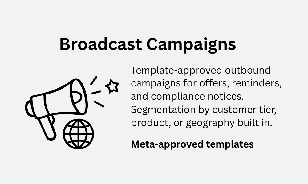 Serve your operations teams, relationship managers, and enterprise clients with high-value, high-frequency WhatsApp workflows.
