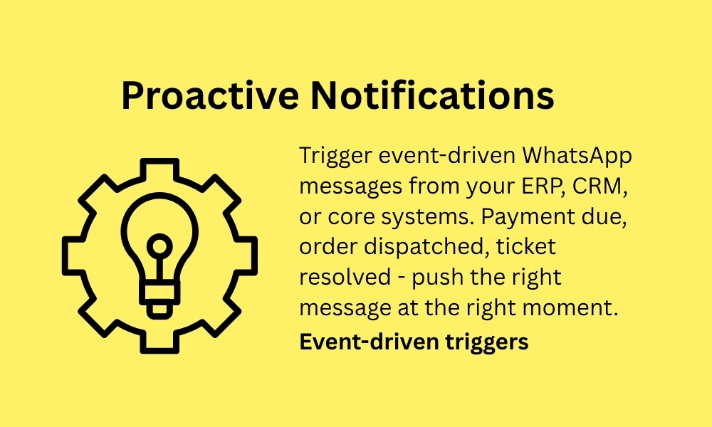 Keep your field teams, partners, and customers in sync — proactive updates and two-way communication all through WhatsApp.